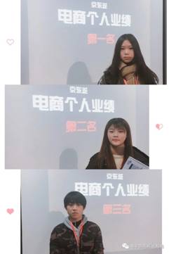 京東班通過為期一個月的激烈角逐,The King戰隊獲得了本次比賽的冠軍,月銷售額是 51613.4元(新店首月業績)。Best戰隊獲得了本次比賽季軍,月銷售額是19789.2元。Six God戰隊獲得了本次比賽亞軍,月銷售額是14484元。在個人業績中王云霞同學獲得了本次比賽冠軍,吳雨晴同學獲得本次比賽季軍,謝信輝同學獲得本次比賽亞軍。