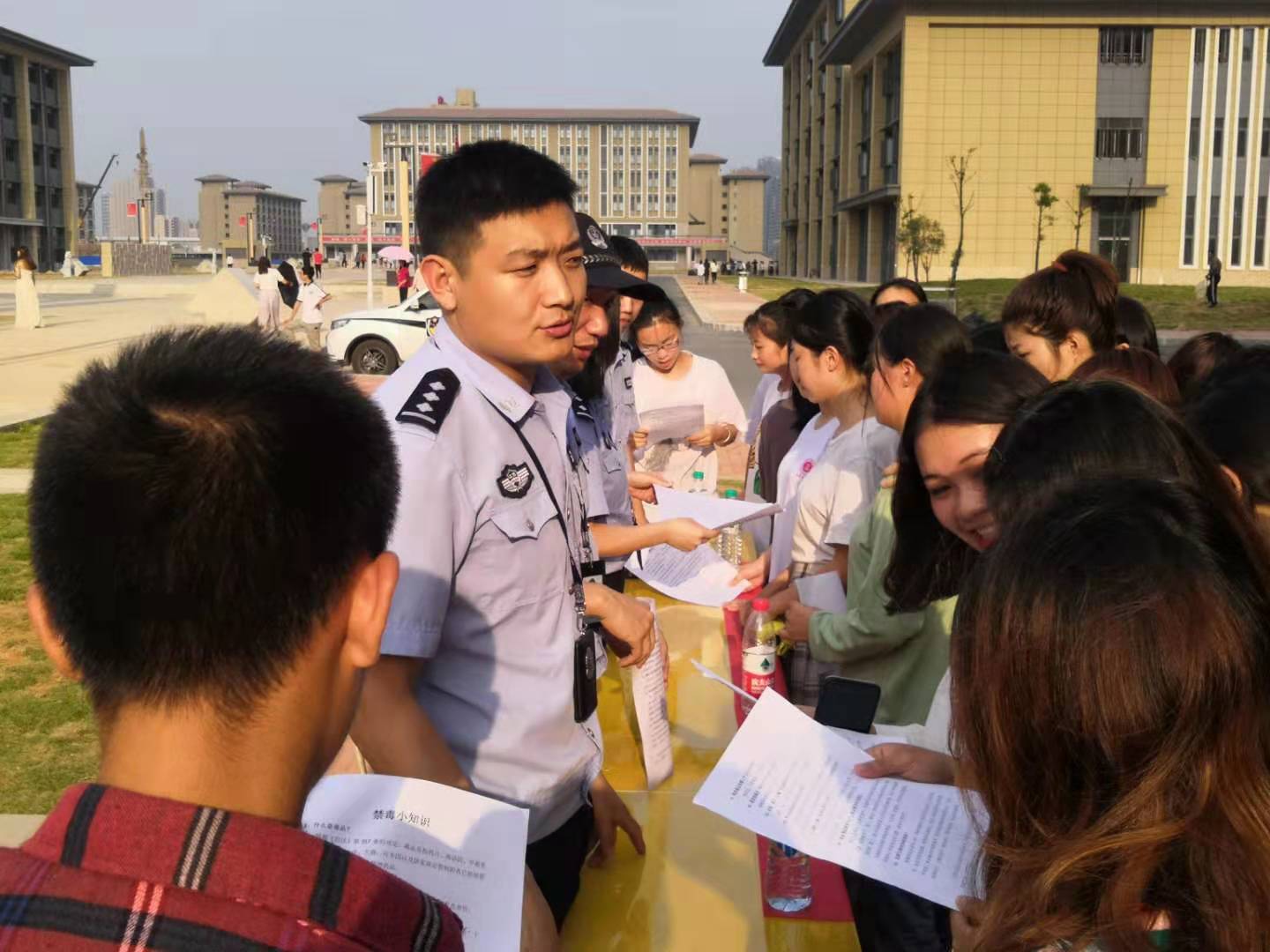 為進一步加強學校禁毒宣傳力度,增強我校大學生的安全防范意識和自覺抵制毒品侵襲的能力,2019年10月10日學校保衛處聯合向塘派出所開展禁毒教育宣傳活動。