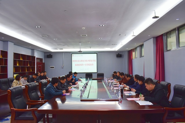 11月24日,合肥經濟技術職業學院舉辦者、海創集團法定代表人秦海,海創集團副總經理鄭興銀、名譽院長江敏、常務副院長馬豐年、副院長許克維、院長助理張海軍、黨工部部長吳鵬、招就處長謝樂剛一行8人來我校考察交流。