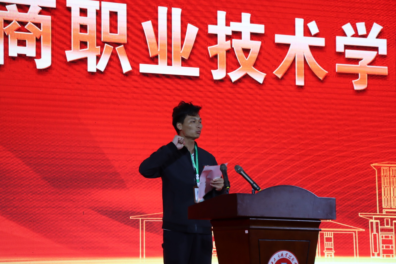 黨委書記趙頂興在運動會開幕式上宣布江西工商職業(yè)技術(shù)學院第十三屆運動會開幕。