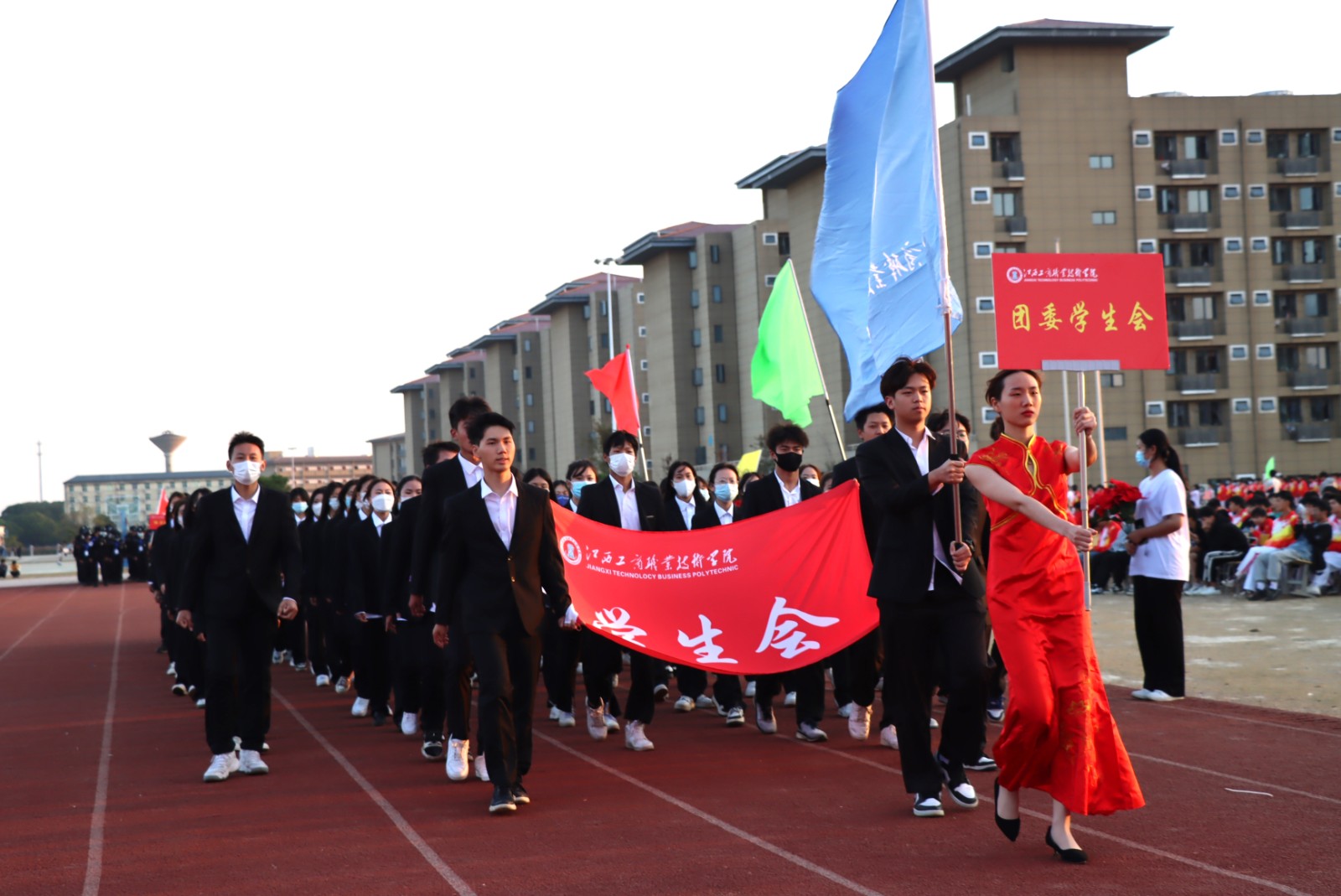 11月1日下午,江西工商職業(yè)技術(shù)學院在田徑場隆重舉行第十三屆運動會開幕式。學校黨委書記趙頂興,校長劉明初,常務(wù)副校長李盛艷,黨委副書記馬江華,副校長辛紹南、胡志鵬、王木生,校長助理胡鵬飛出席開幕式。全體師生參加開幕式。開幕式由李盛艷主持。