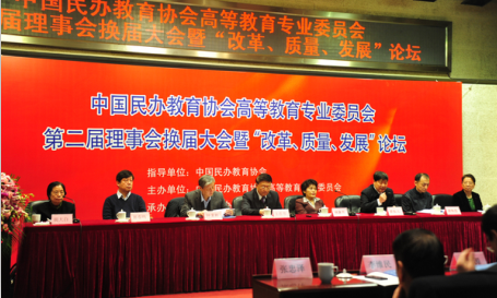 中國民辦教育協會高等教育專業委員會第二屆理事會換屆大會暨“改革、質量、發展”論壇大會于2014年2月20日在北京舉行。中國教育學會會長鐘秉林給大會發來賀信。教育部部長助理、黨組成員林蕙青,北京市人大常委會原副主任、國家總督學顧問、國家教育咨詢委員會委員、聯合國教科文組織協會四屆聯合會副主席、亞太地區聯合國教科文組織協會聯合會名譽主席陶西平,全國人大常委會常委、全國人大教科文衛委員會副主任委員王佐書,教育部發展規劃司司長謝煥忠和來自全國各地274所民辦院校的與會代表參加了會議。我院副院長胡國輝參加會議。