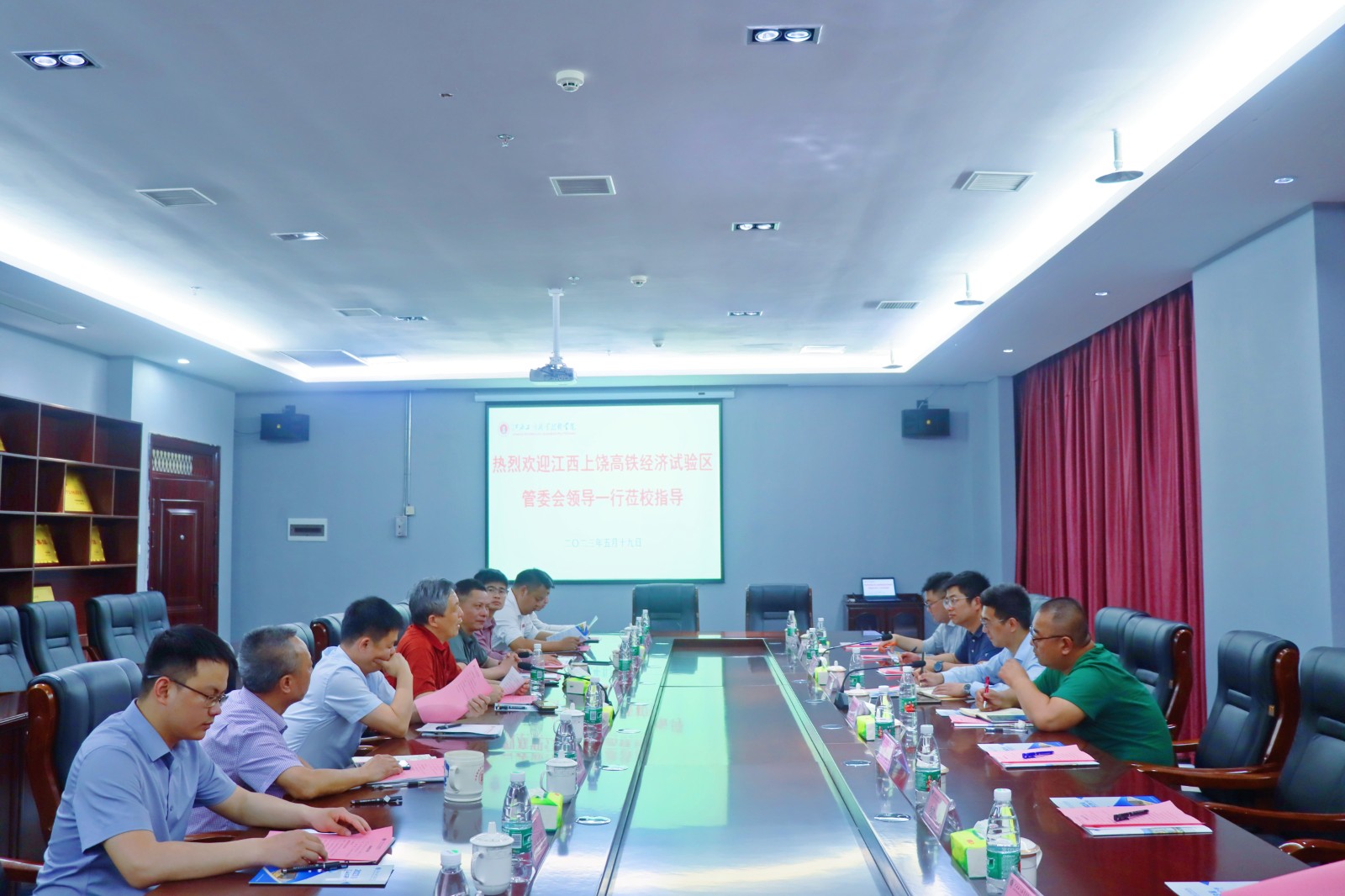 5月19日,江西上饒高鐵經濟試驗區黨工委委員、管委會副主任徐承俊一行來我校調研,學校董事長胡樂平、黨委書記趙頂興、董事長助理李盛艷等陪同調研。
