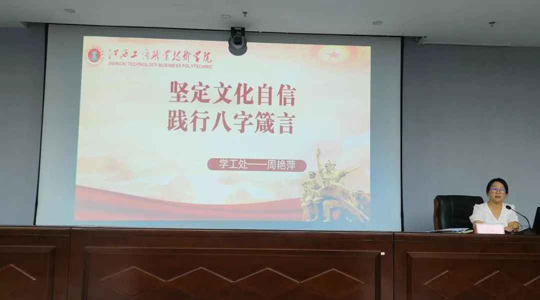 學生工作處處長周艷萍以“堅定文化自信,踐行八字箴言”為題作報告。她在報告中要求輔導員適應新時代大學生特點,強化身份認同,恪守職業道德,加強守正創新。強調全體輔導員要牢牢掌握相關的崗位認知、思想覺悟、政治理論等,全面拓展知識儲備,努力提高自身職業素養和職業能力。
