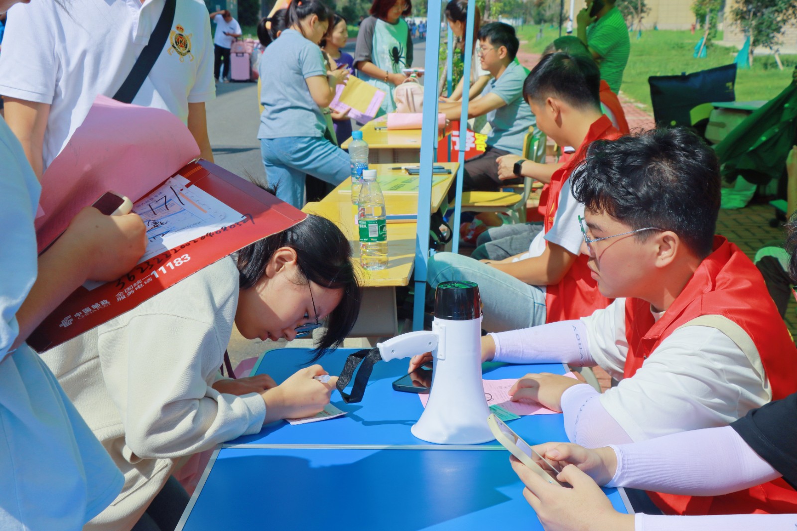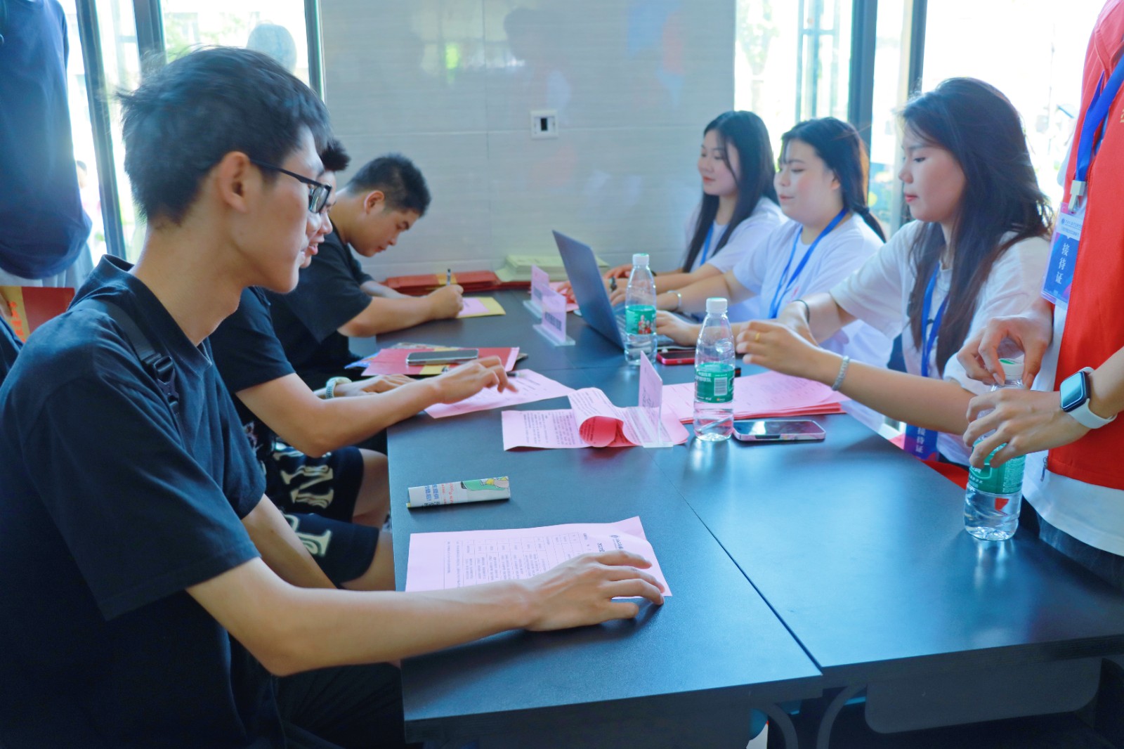“同學,請來這邊……”在迎新志愿者的悉心引導下,2023級新同學熱鬧而有序地進行著報到、審核入學信息、領取門禁卡、領取軍訓物品等一系列開學報到手續。
