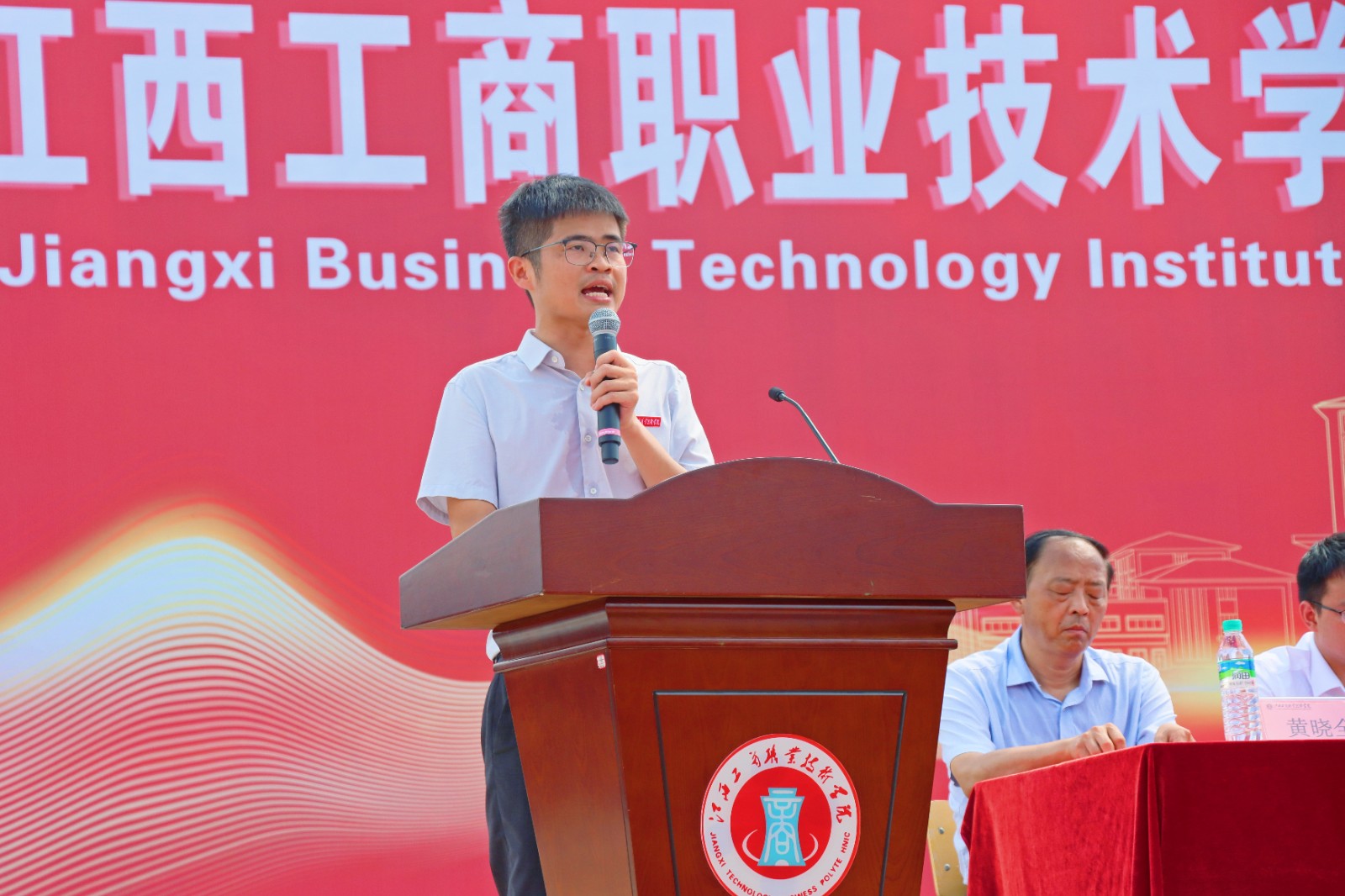 教官代表符德昊、教師代表醫學院專職教師楊承娜、老生代表工程學院2021級蘭雪彬、新生代表經管學院2023級王漢斌先后在典禮上發言。