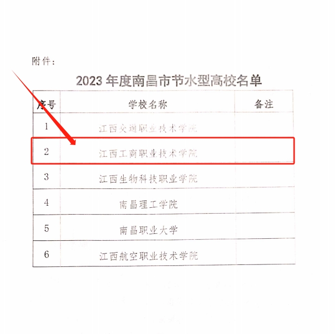 近日,記者從南昌市水利局、南昌市教育局、南昌市機關事務管理局(洪水資源字【2023】10號)文件獲悉,經(jīng)過材料申報、專家評審,江西工商職業(yè)技術學院獲評為“2023年度南昌市節(jié)水型高校”稱號。