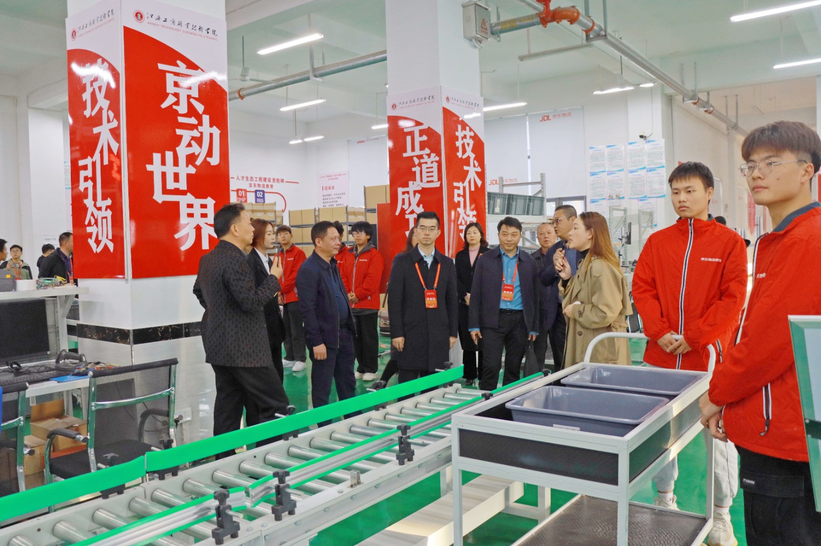 會前,重慶市民辦高等職業教育考察團一行參觀了學校教育學院學前教育實訓中心,工程學院汽車實訓中心,經管學院京東物流實訓中心,經管學院電商直播實訓中心,醫學院護理、藥學實訓中心等地。