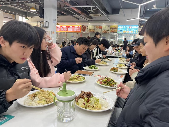 中午用餐時間,胡校助與同學們來到食堂共進午餐。期間,胡校助仔細詢問同學們的生活情況,叮囑同學們在刻苦學習的同時要加強營養,注重飲食均衡。