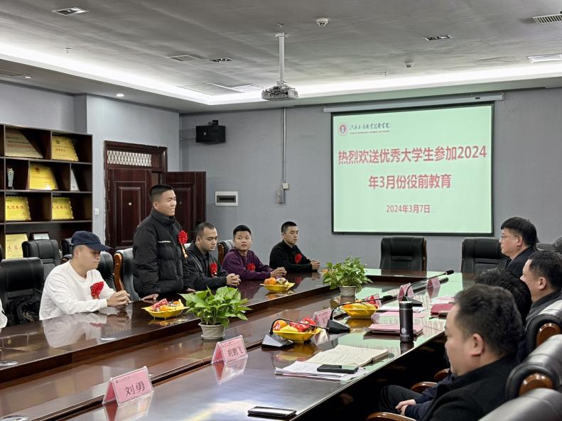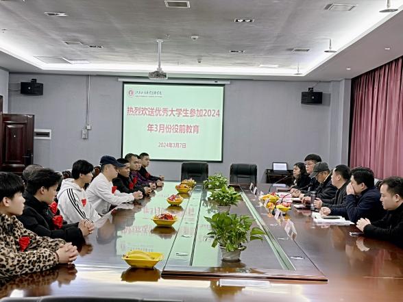 郝謙代表學(xué)校行政向即將參加役前教育的11位大學(xué)生們表示最誠(chéng)摯的祝賀,他表示,同學(xué)們積極響應(yīng)祖國(guó)號(hào)召,接受祖國(guó)的挑戰(zhàn),攜筆從戎,投身國(guó)防建設(shè)中去,參軍報(bào)國(guó)是新時(shí)代青年的迫切向往,強(qiáng)軍夢(mèng)、強(qiáng)國(guó)夢(mèng)是實(shí)現(xiàn)中華民族偉大復(fù)興的堅(jiān)強(qiáng)保障。同學(xué)們不僅按受了良好的教育,以優(yōu)異成績(jī)完成了學(xué)業(yè),又選擇從軍報(bào)國(guó)的光榮道路,也是你們家里的光榮,更是學(xué)校的光榮,你們是全校同齡人大學(xué)生中的佼佼者,是新時(shí)代的有志熱血青年。