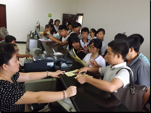 新生在財(cái)務(wù)處排隊(duì)繳費(fèi)