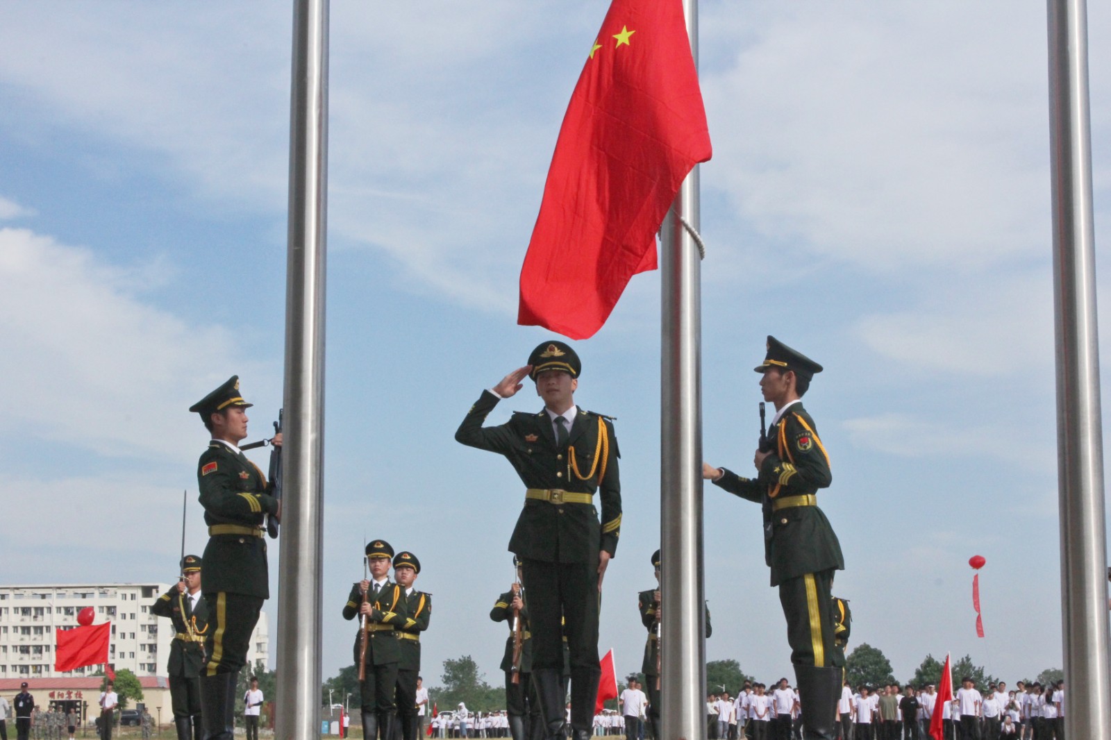 趙頂興宣布開學典禮正式開始后,各學院代表隊分別入場,開始軍訓匯報演出。