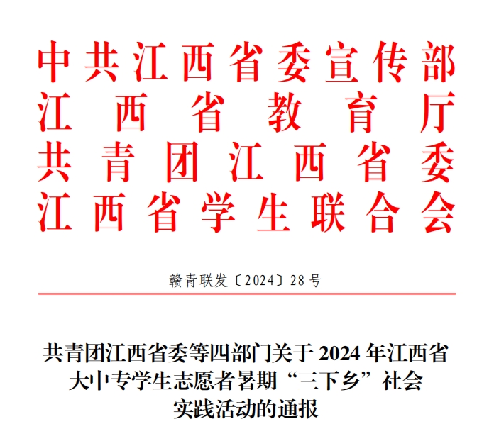 今年6月,省委宣傳部、省教育廳、團省委、省學聯聯合下發通知,部署 2024 年江西省大中專學生志愿者暑期文化科技衛生“三下鄉”社會實踐活動,引導和幫助廣大青年學生上好與現實相結合的“大思政課”,在社會課堂中“受教育、長才干、作貢獻”,爭做有理想、敢擔當、能吃苦、肯奮斗的新時代好青年。啟動以來,全省 100 余所大中專院校 4000 余支實踐隊伍廣泛開展實踐活動,取得較好的傳播效果和社會影響。