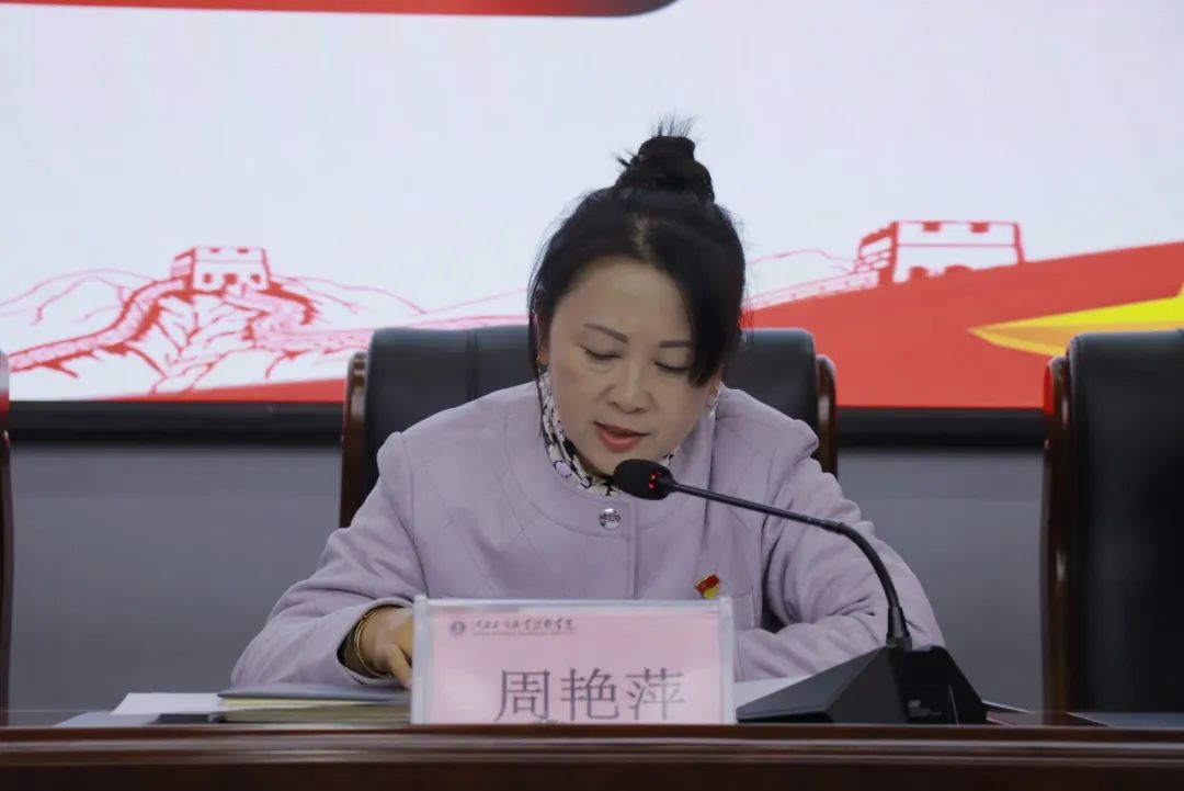 周艷萍致閉幕詞,希望全體同學以此次大會為新起點,攜手奮進,為學校建設添磚加瓦,于青春賽道奮力奔跑,書寫絢麗華章。