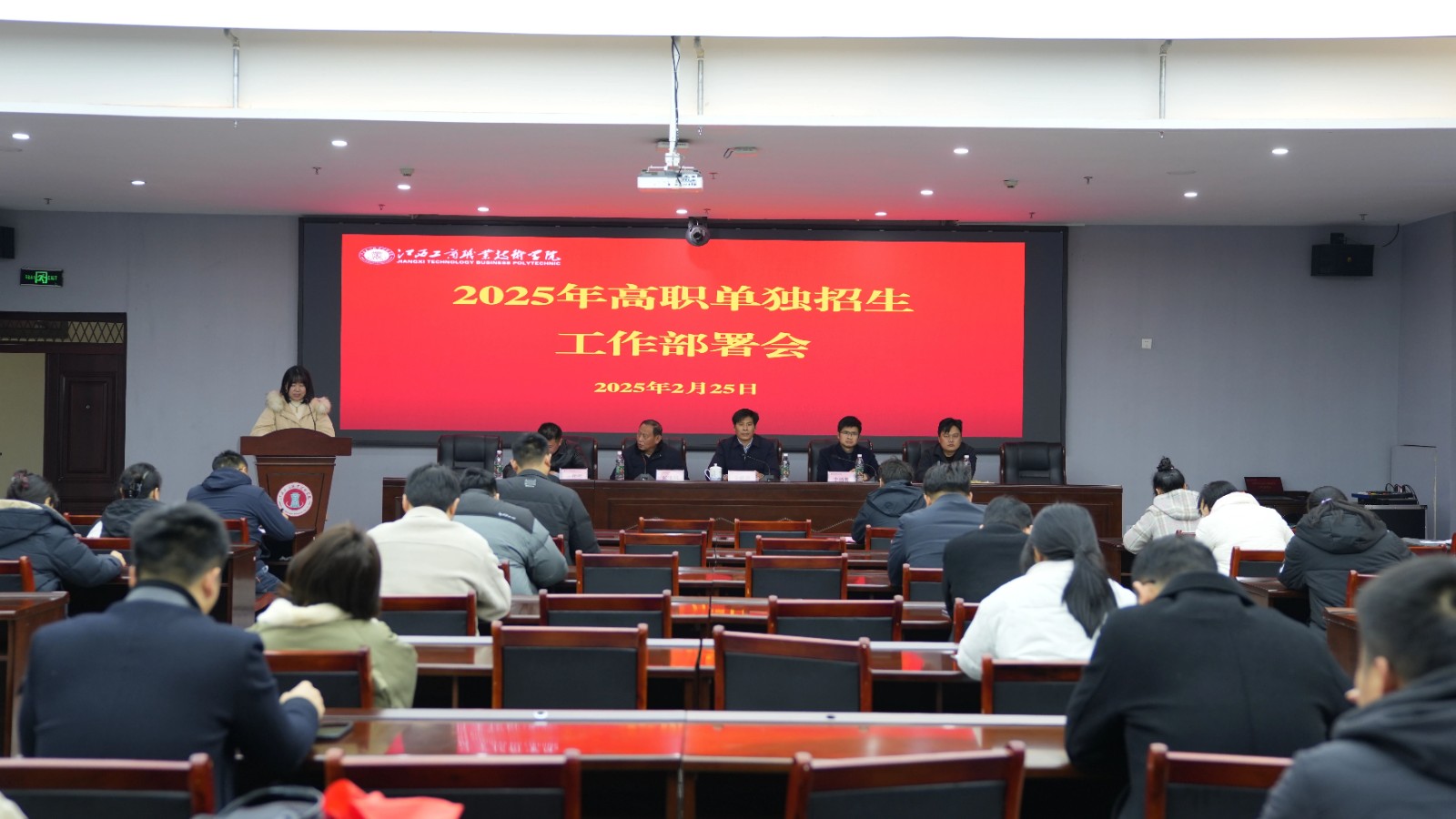 2月25日,我校在圖書館五樓學(xué)術(shù)報(bào)告廳召開了2025年高職單獨(dú)招生工作部署會(huì)。黨委書記、督導(dǎo)專員應(yīng)露晨,黨委委員、行政負(fù)責(zé)人李盛艷,黨委委員、紀(jì)委書記張細(xì)和,校長(zhǎng)助理胡鵬飛出席,各分院黨支部書記、招生宣傳老師參加,大會(huì)由招生處處長(zhǎng)占岳軍主持。