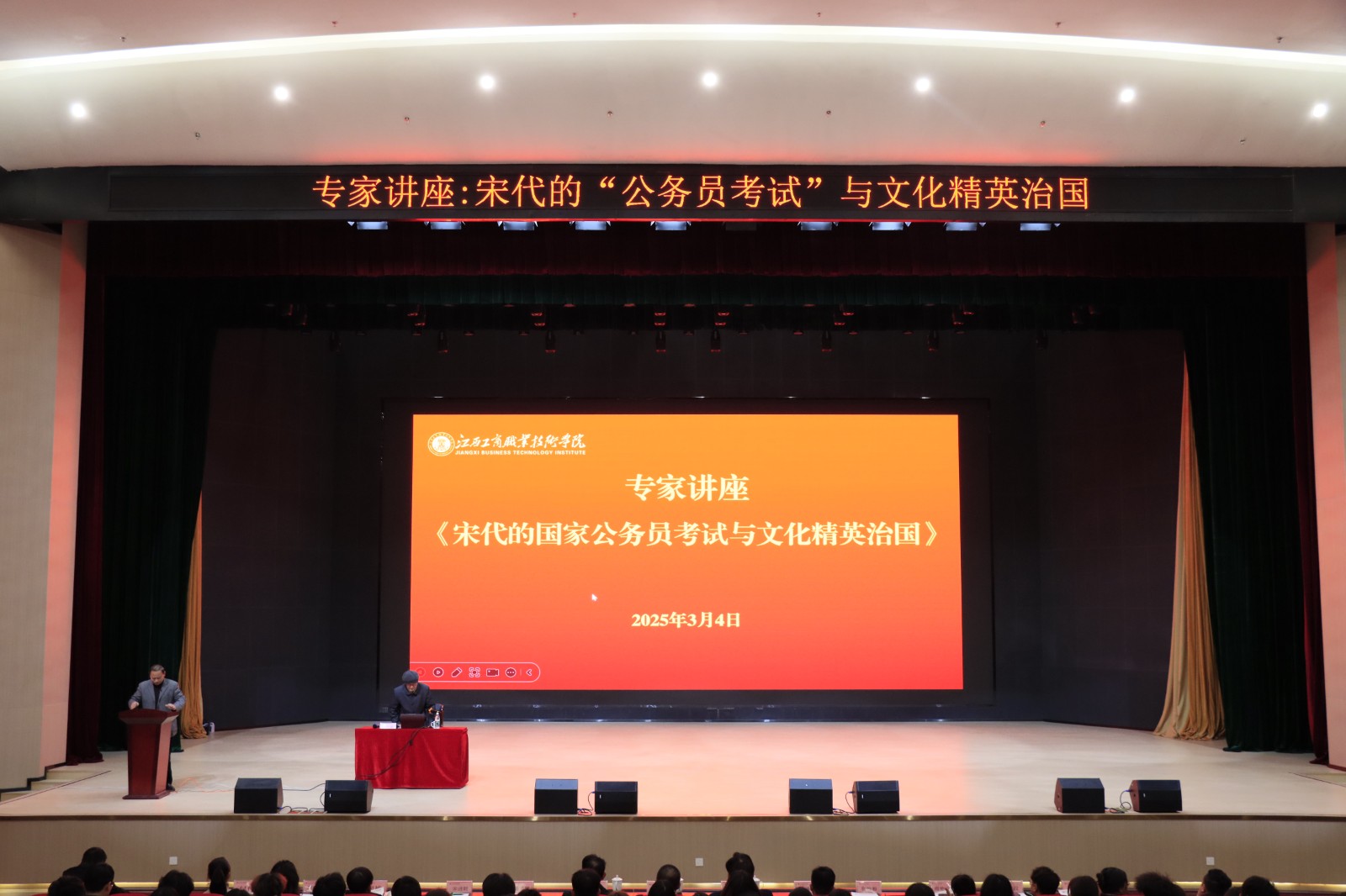 3月4日上午,學校邀請南京師范大學教授、博士生導師,清華大學特聘教授鐘振振,作題為《宋代的“公務員考試”與文化精英治國》學術報告。報告會在學術報告廳舉行,在家校領導,職能部門負責人,學生代表等,共計1000人聆聽報告。報告會由黨委委員、紀委書記張細和主持。
