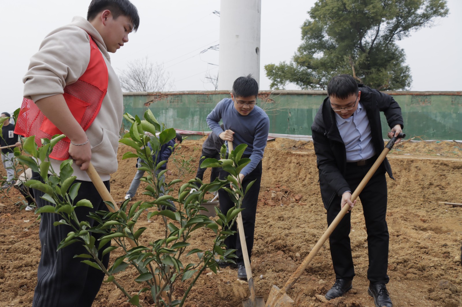 扶樹、鏟土、澆水分工明確又相互協(xié)作