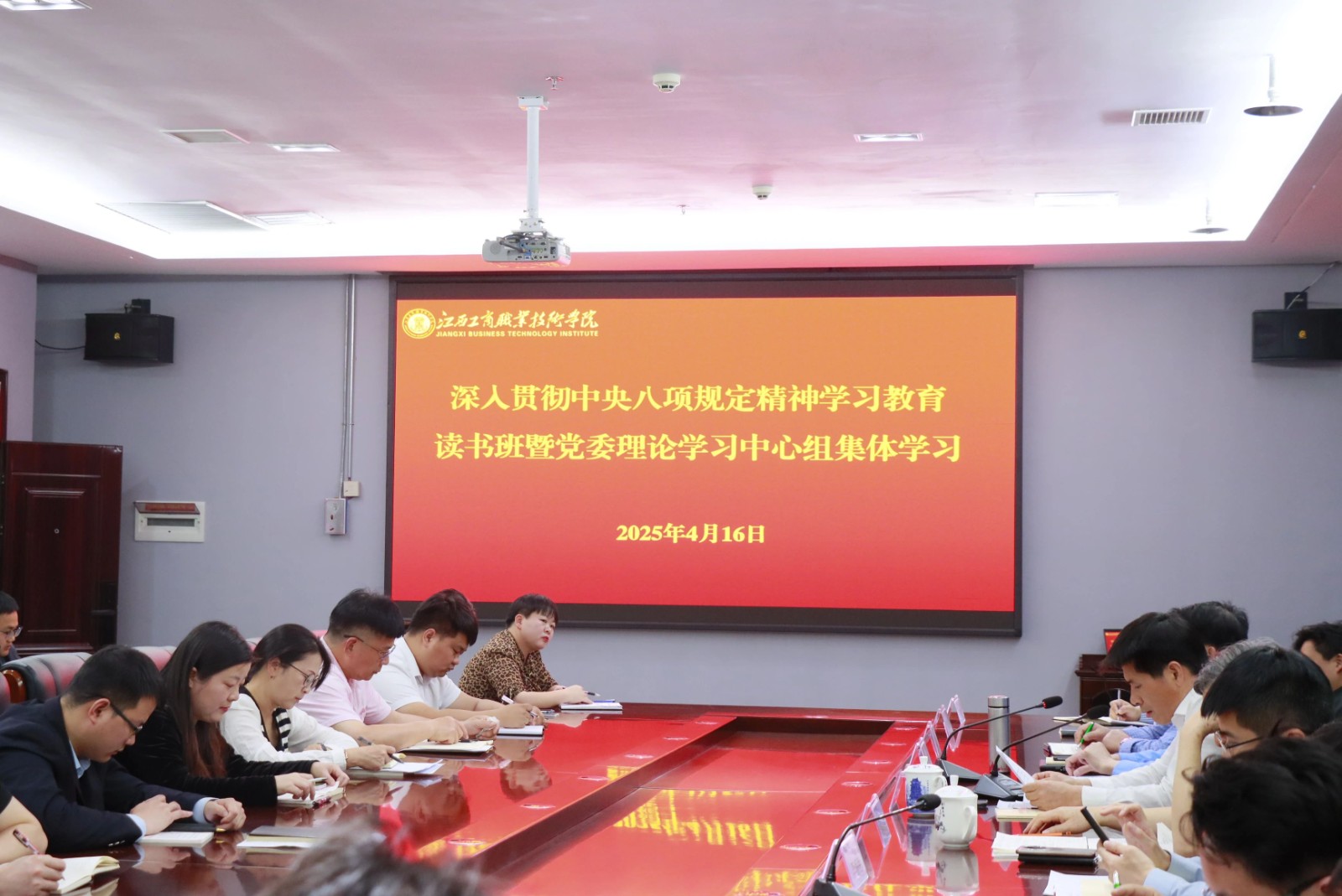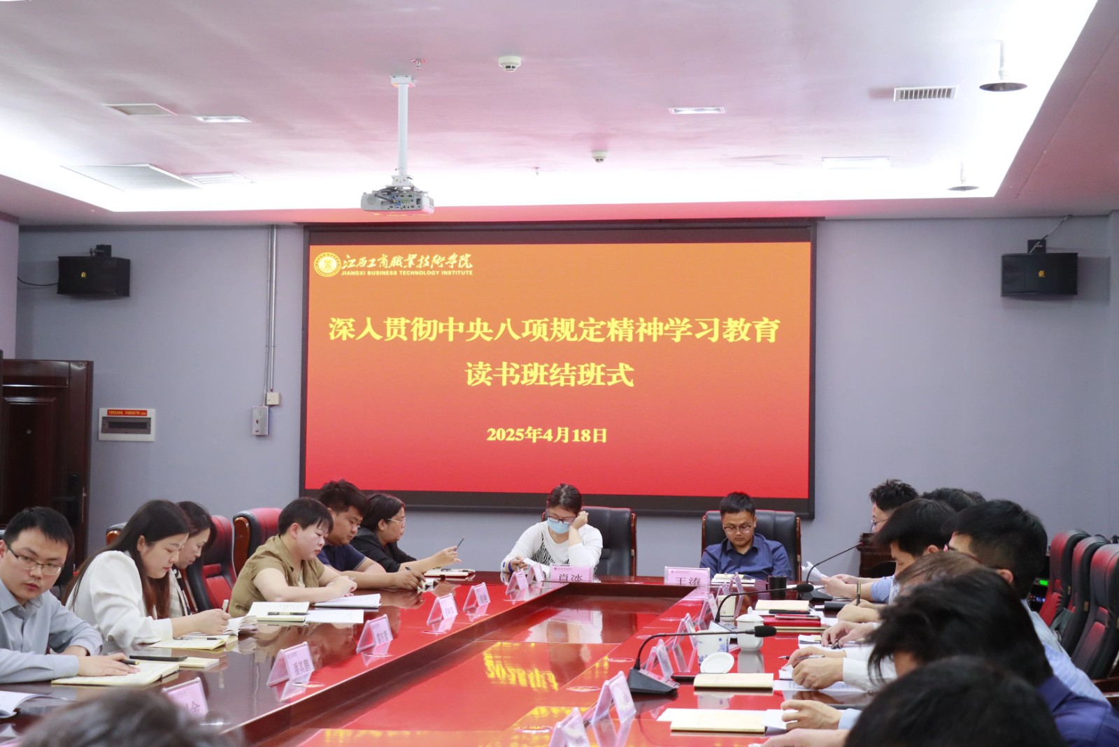 4月16至18日,學校舉辦深入貫徹中央八項規定精神學習教育讀書班暨黨委理論學習中心組(擴大)學習會。通過個人自學、專題輔導、觀看視頻、分組研討、集中交流等方式,認真學習習近平總書記關于加強黨的作風建設的重要論述和中央八項規定及其實施細則精神。黨委書記、督導專員應露晨作開班動員和總結講話。