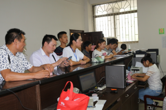 系部老師在為新生辦理接收手續