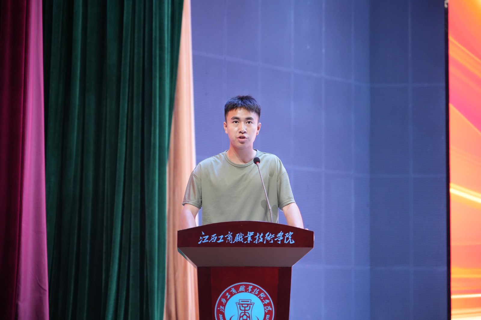 2025級新生鄧升代表全體新生莊嚴承諾,軍訓間將嚴格遵守軍訓紀律,認真完成每一項訓練任務,展現新時代大學生青春風采。