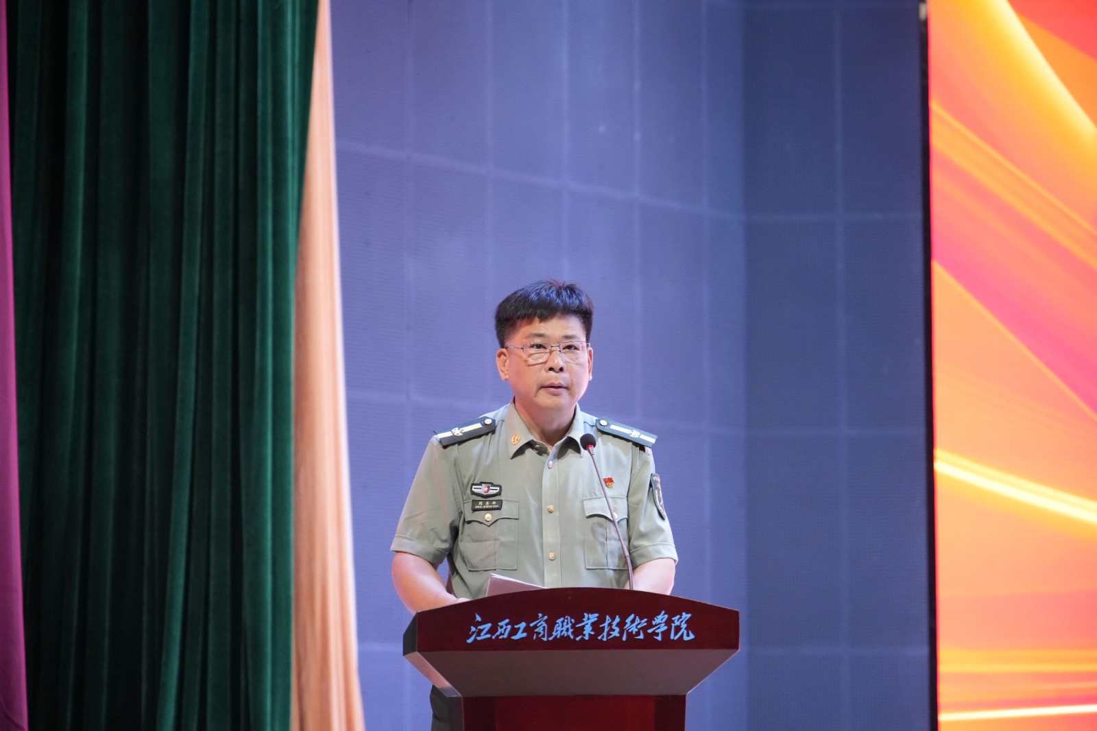 武裝部部長周圣華介紹軍訓方案,本次軍訓以“強化軍事技能,筑牢國防意識”為主題,聚焦新生軍事技能訓練,組織開展各類技能訓練活動。