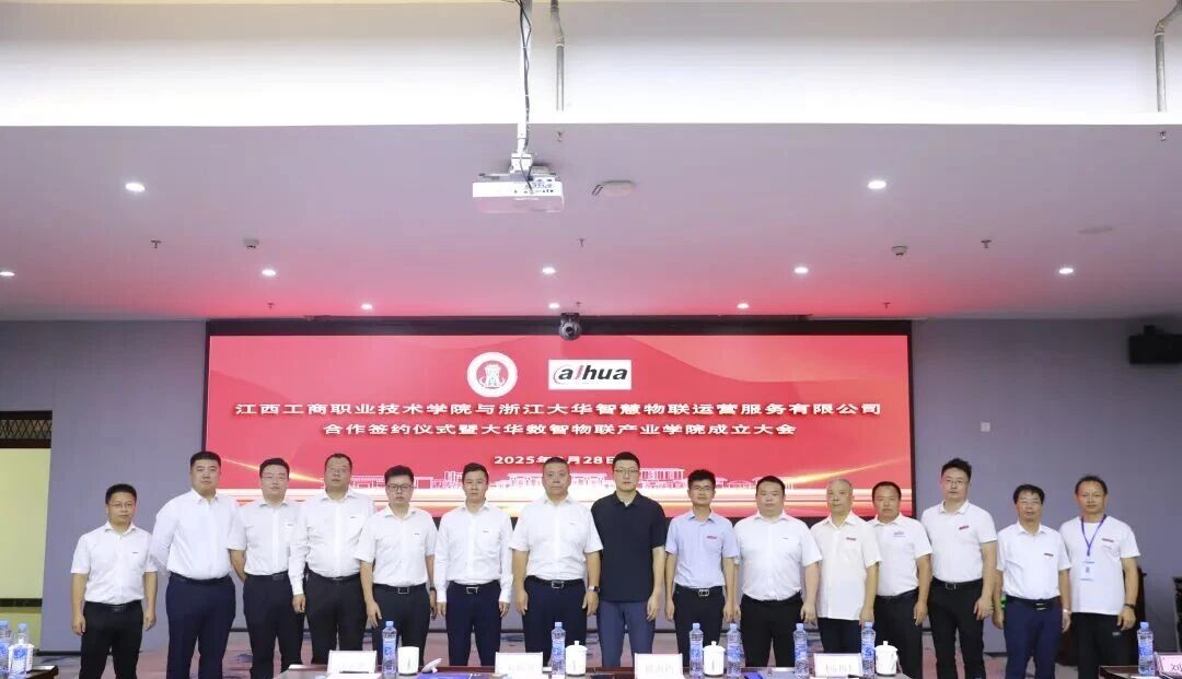 儀式上,校企雙方代表簽署了戰(zhàn)略合作協(xié)議,并為大華數(shù)智物聯(lián)產(chǎn)業(yè)學院揭牌。