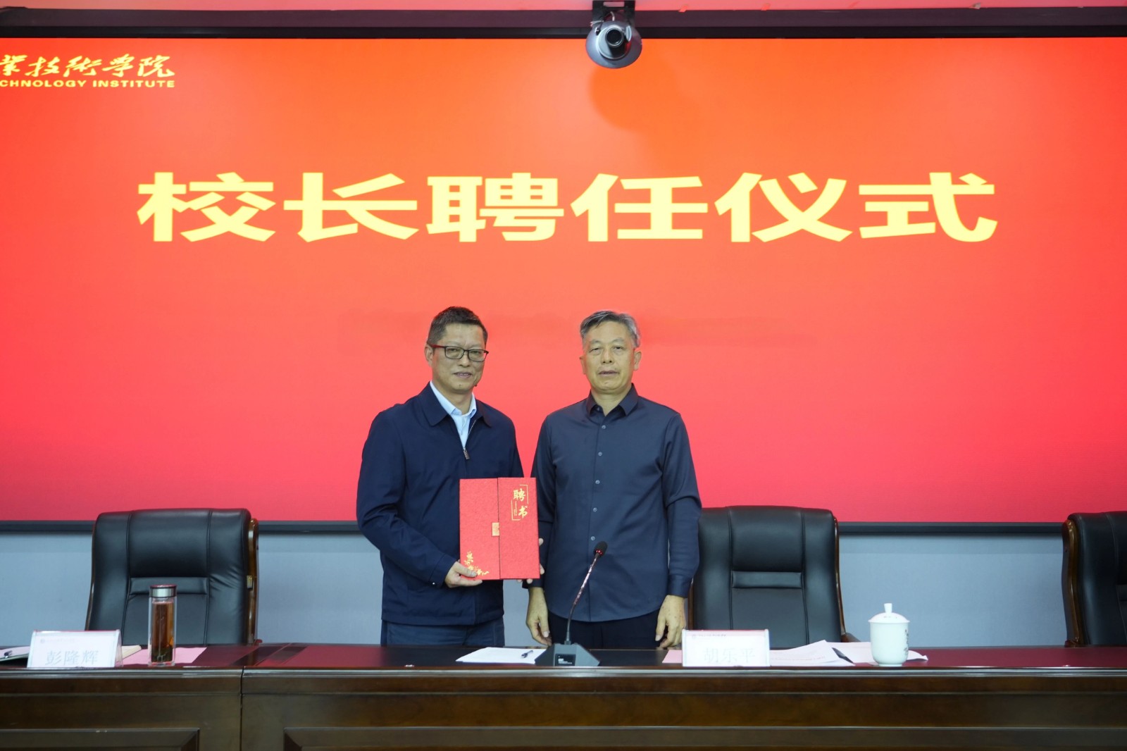 會上,理事長胡樂平宣布關于聘任彭隆輝同志為江西工商職業技術學院校長的決定,并為彭隆輝同志頒發聘書。