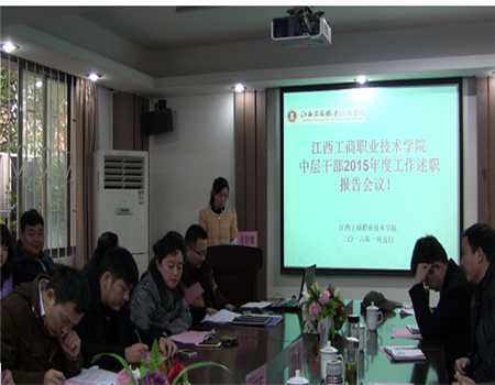 此次述職會議主要從德、能、勤、績四方面進行考核。在會議中,學院各系部、處室負責人依次進行了述職,各部門準備充分,紛紛通過舉實例、列數據、圖文等方式,全面、客觀、深入地圍繞2015年度重點工作總結、未完成的工作和存在問題、2016年工作計劃及措施三個方面進行了述職匯報。