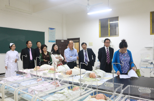 助產(chǎn)專業(yè)檢查組專家現(xiàn)場(chǎng)考察助產(chǎn)專業(yè)設(shè)備