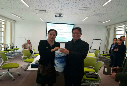 (胡樂平董事長與上海建橋學院鄭祥展院長互贈紀念品)
