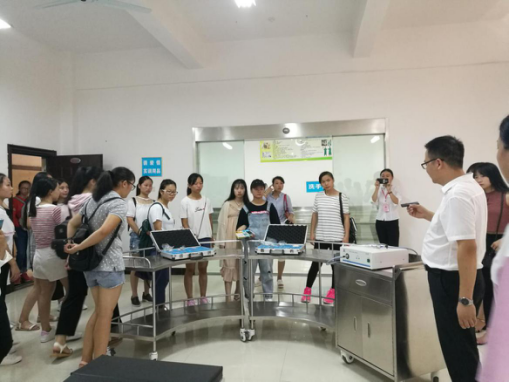 護理系書記尹國華,實習老師胡鑫鑫,系學生會主席及各部門部長出席本次活動。尹國華帶領新生參觀護理助產(chǎn)專業(yè)實訓樓,并且對護理及助產(chǎn)專業(yè)進行了簡要介紹。