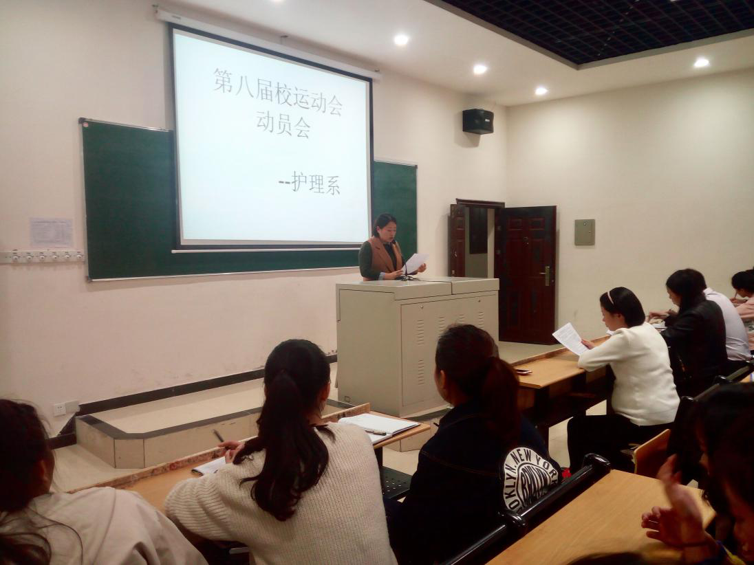 為做好運動會期間的安全穩定,鼓舞同學們的熱情,激發同學們的斗志,保障運動會期間各項工作有序進行,護理系于10月24日晚上舉行了參加第八屆校運會動員大會。護理系書記尹國華,班主任宋琴、胡鑫鑫、周煒鑫,各班校運會工作組負責人、運動員代表、學生會各部門負責人、表演隊代表等參加了大會。