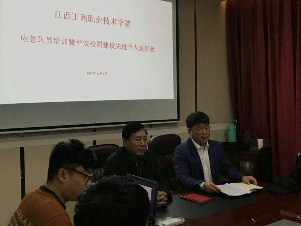 2017年11月1日在行政樓第一會議室,學院召開了應急隊員培訓暨平安校園建設先進個人表彰會,全體應急隊員參加了這次會議,學院黨委副書記、副院長傅江海出席了會議并講話。