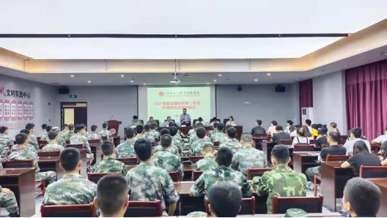 首先,胡鵬飛宣讀了《江西工商職業技術學院2021級新生軍訓工作方案》并作軍訓開訓講話,對全體參訓人員提出了各項要求和注意事項。