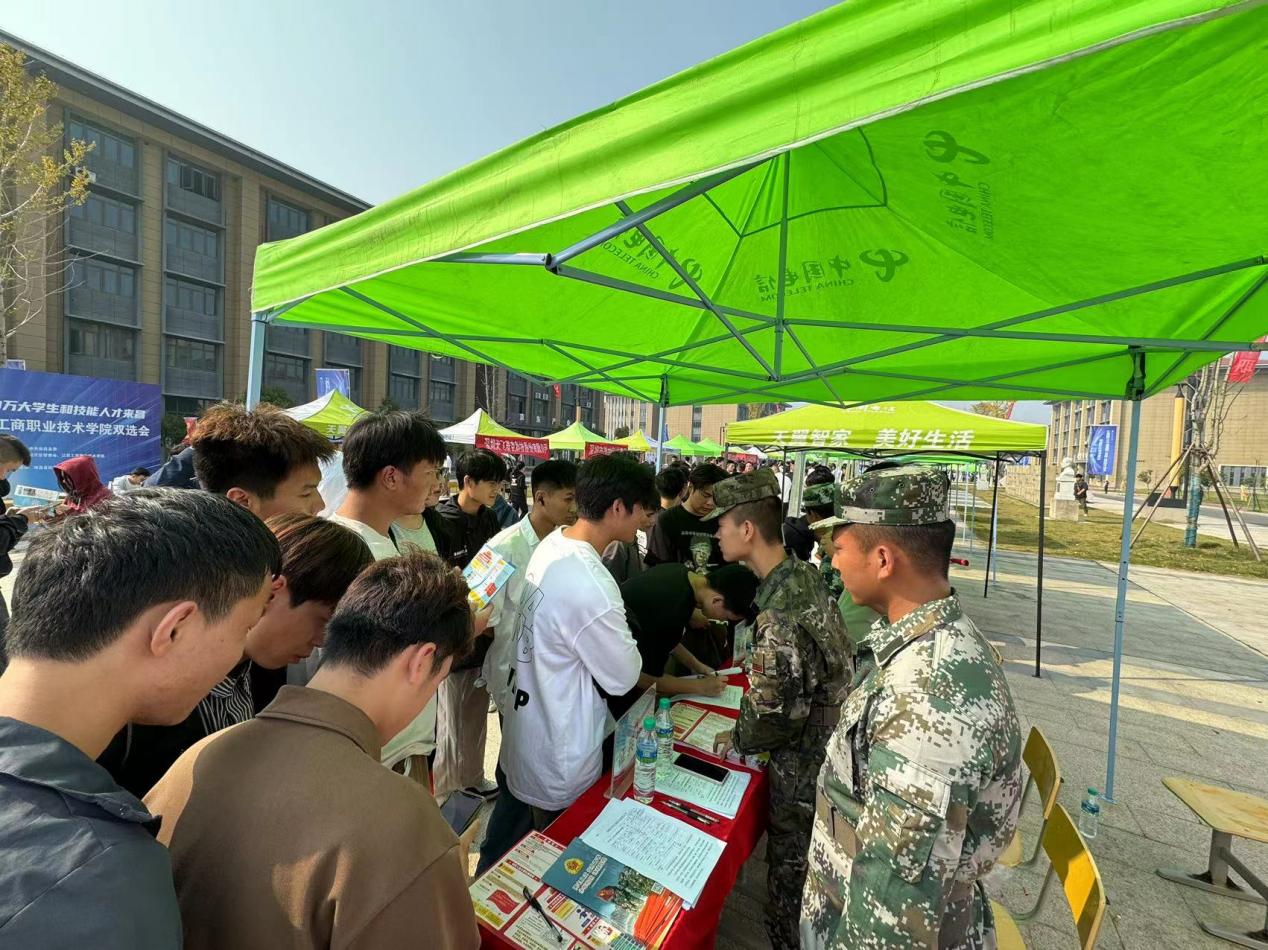 10月15日,江西省2024屆高職(專科)院校畢業生綜合類聯盟招聘會在學校隆重舉行。學校武裝部以2024屆畢業生招聘會為契機,切實為2024年春季征兵工作奠定扎實基礎,在招聘會現場設立以“青春熱血踏軍旅,鏗鏘誓言鑄軍魂”為主題的大學生征兵政策咨詢展位,主要面向2024屆大學畢業生班學生進行征兵宣傳。