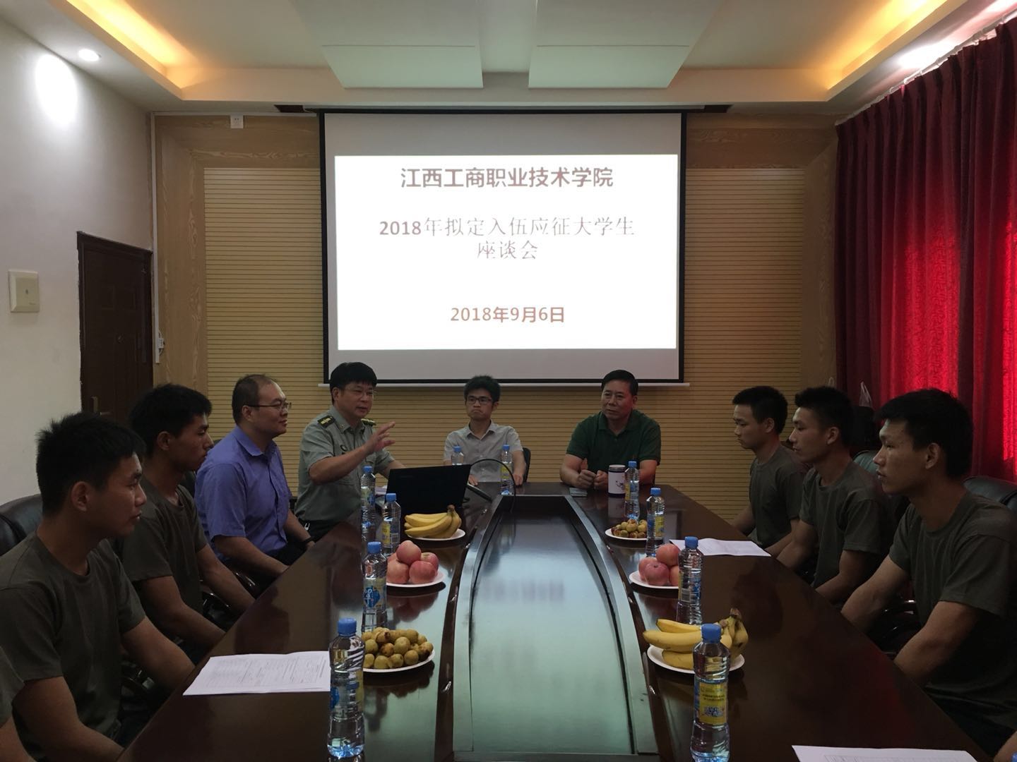 二、9月6日下午我校在行政樓第二會議室召開“2018年應征入伍新兵歡送會”,學校黨委副書記傅江海,有關職能部門、今年入伍新兵參加了歡送會。黨委副書記、副校長傅江海宣讀習近平總書記給南開大學《新入伍大學生回信》。重溫回信精神,習總書記肯定了大學生參軍攜筆從戎,報效國家的行為,勉勵他們熱血揮灑在實現強軍的偉大實踐之中,書寫絢爛、無悔的青春篇章,歡送會結束后,與會領導、學校武裝部、職能部門與入伍新兵同學合影留念。