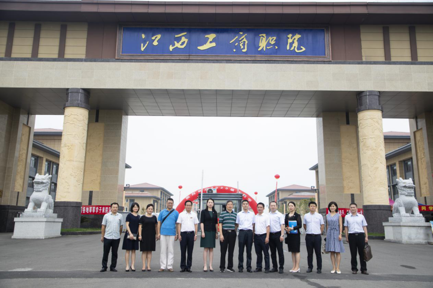 隨后,在簽約儀式中,南昌市分行黨委委員、副行長陳躍與集團董事長胡樂平作為雙方代表,簽署全面戰略合作協議。簽約儀式結束后,參加儀式的雙方院校、省市分行、支行領導合影留念,并參觀了新校園及教育、護理、工業機器人、電商等實訓實驗室。