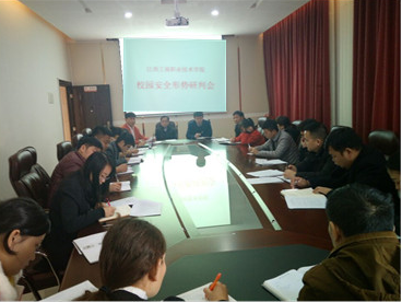 為了貫徹落實省教育廳下發的“關于轉發《教育部辦公廳關于深入開展安全生產大檢查切實加強歲末年初學校安全工作的通知》(贛教辦函〔2016〕260號)、“關于切實做好全省學校安全工作的緊急通知“(贛教電傳字[2016]47號)”的文件精神,學院于2016年12月2日上午召開了安全形勢研判會。