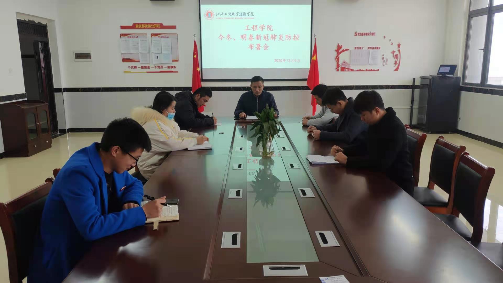 2020年12月9日下午,工程學院召開“今冬明春疫情防控工作部署”緊急會議,工程學院黨支部書記做工作部署,全體輔導員參會。