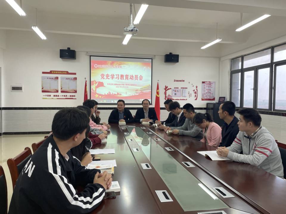 3月23日下午,工程學院召開黨史學習教育動員大會,院長葉華出席會議、黨支部書記劉勇主持,全體黨員及預備黨員參會。