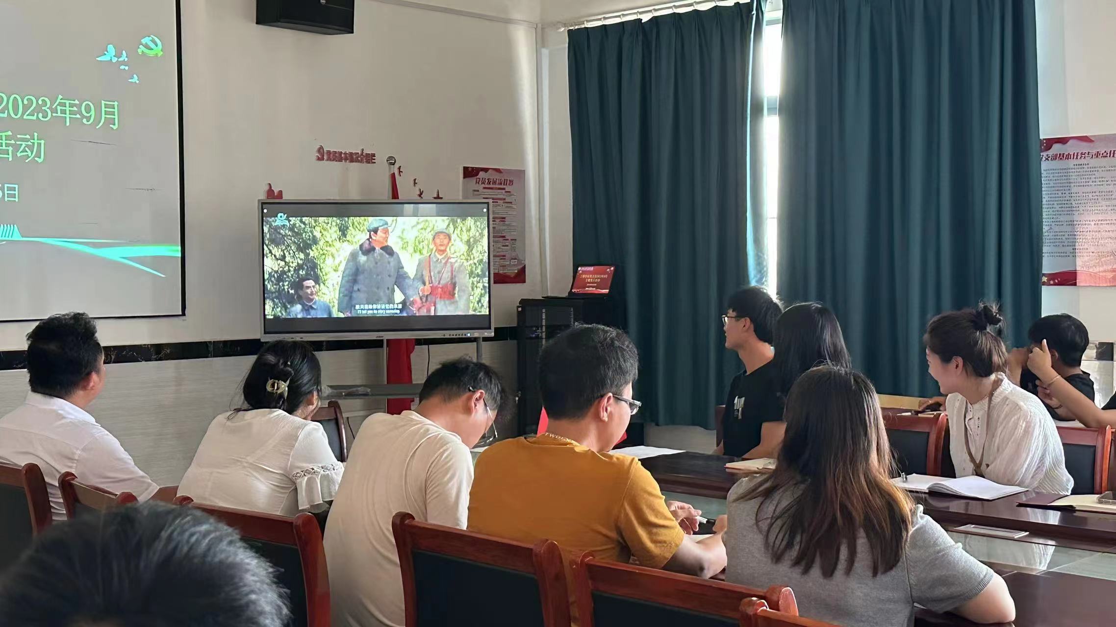 隨后大家共同觀看革命歷史題材影片《決勝時刻》,引導師生在電影中重溫革命故事,感悟紅色情懷。觀影過程中,師生們專心致志,重溫了建國初期的那段崢嶸歲月,感受了革命先輩為實現理想不惜犧牲一切的強大信仰力量。觀影后全體黨員重溫入黨誓詞,用飽滿的熱情、昂揚的斗志表達了作為共產黨員的自豪感與使命感,抒發對黨忠誠的意志和信念。