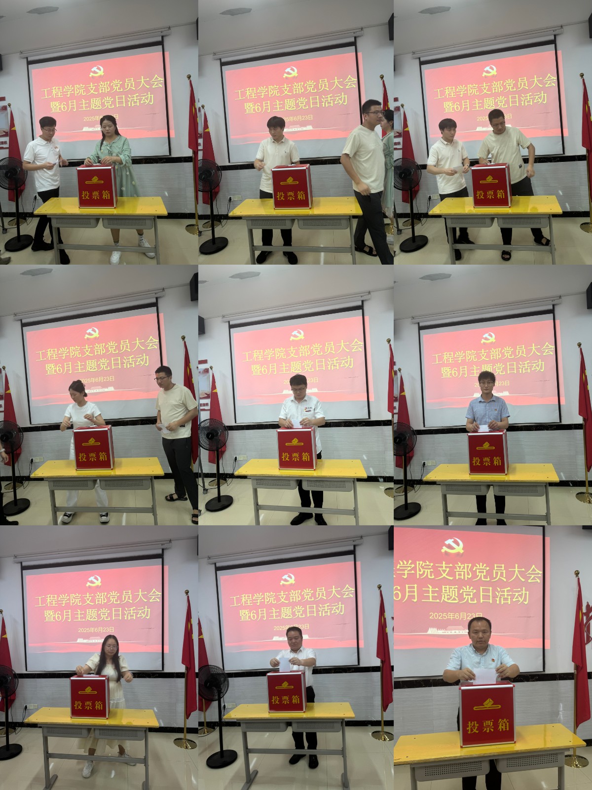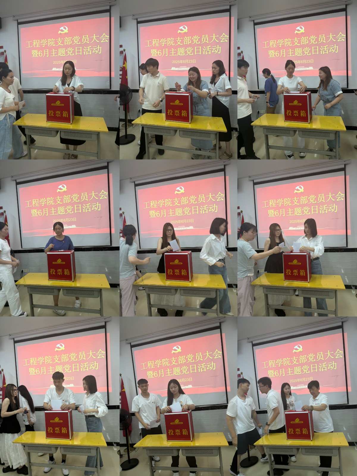 6月23日,工程學院黨支部在黨員活動室北501召開黨員大會暨6月主題黨日活動。會議由黨支部書記胡志鵬主持,全體師生黨員參加。