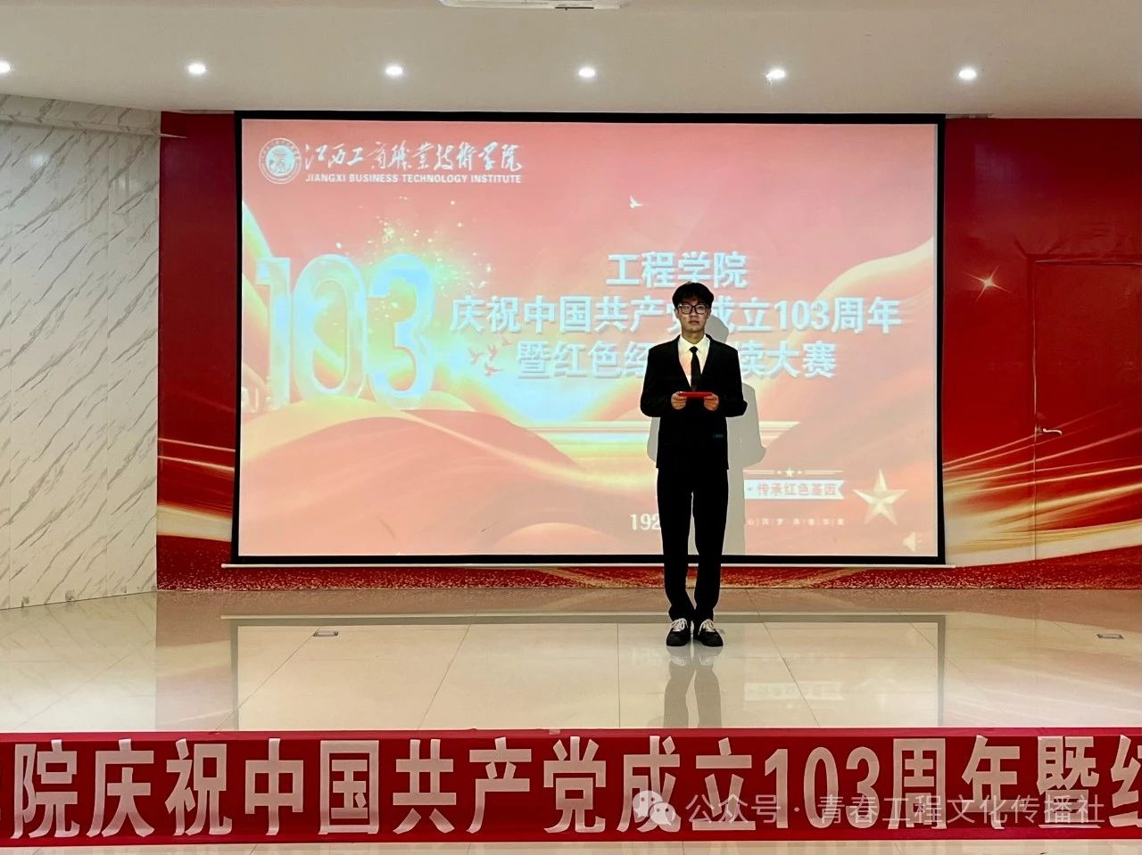 為慶祝中國共產黨建黨103周年,深入學習貫徹黨的二十大精神,弘揚黨的優良傳統,引領廣大學生在誦讀紅色經典中汲取文化養分和精神力量,展現當代大學生與時代同向,與祖國同行,胸懷家國,奮力筑夢的價值追求。6月27日晚,工程學院“慶祝中國共產黨成立103周年暨紅色經典誦讀大賽”在藝術學院報告廳成功舉辦。