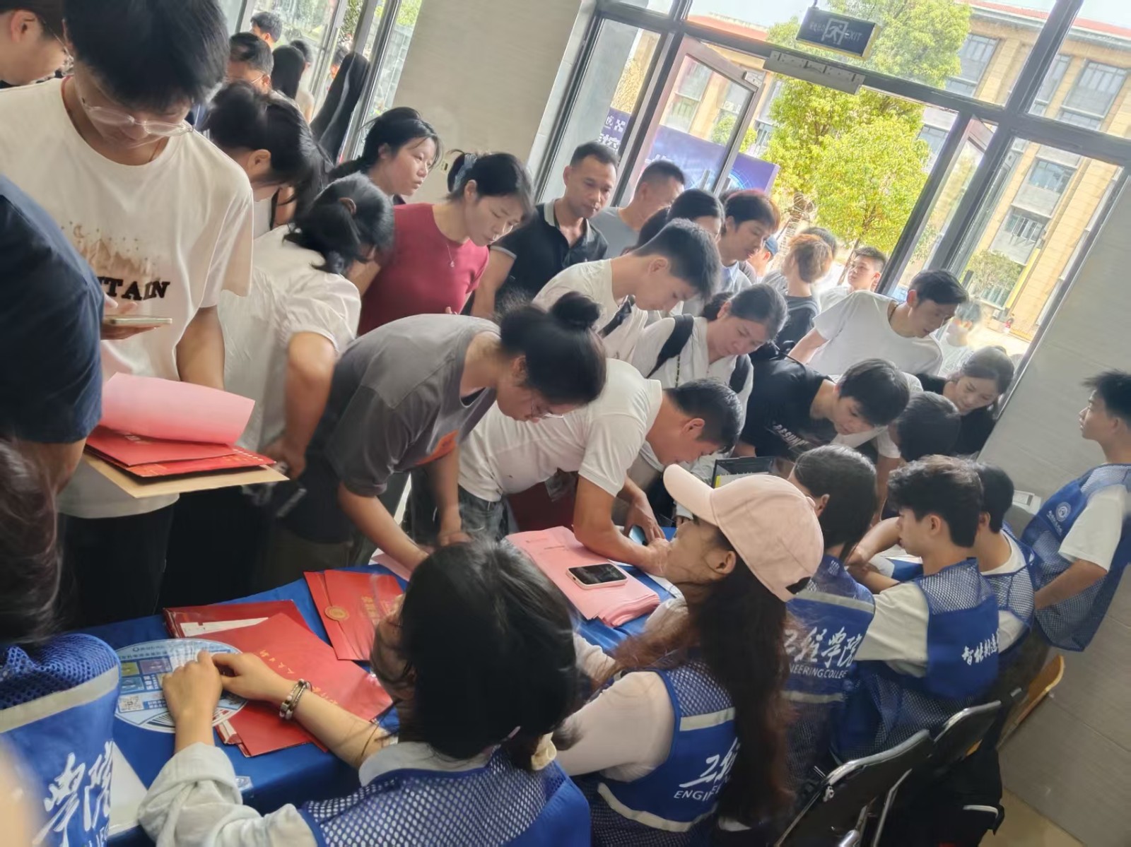 清晨七點,學院的輔導員和學生志愿者早已各就各位,在迎新點等候新生的到來。"同學你好,請這邊登記""宿舍往這個方向走",親切的問候與細致的指引消除了新生初來乍到的陌生感。志愿者們主動接過沉甸甸的行李,一路熱情介紹校園環境,成為萌新們的第一位"校園向導"。
