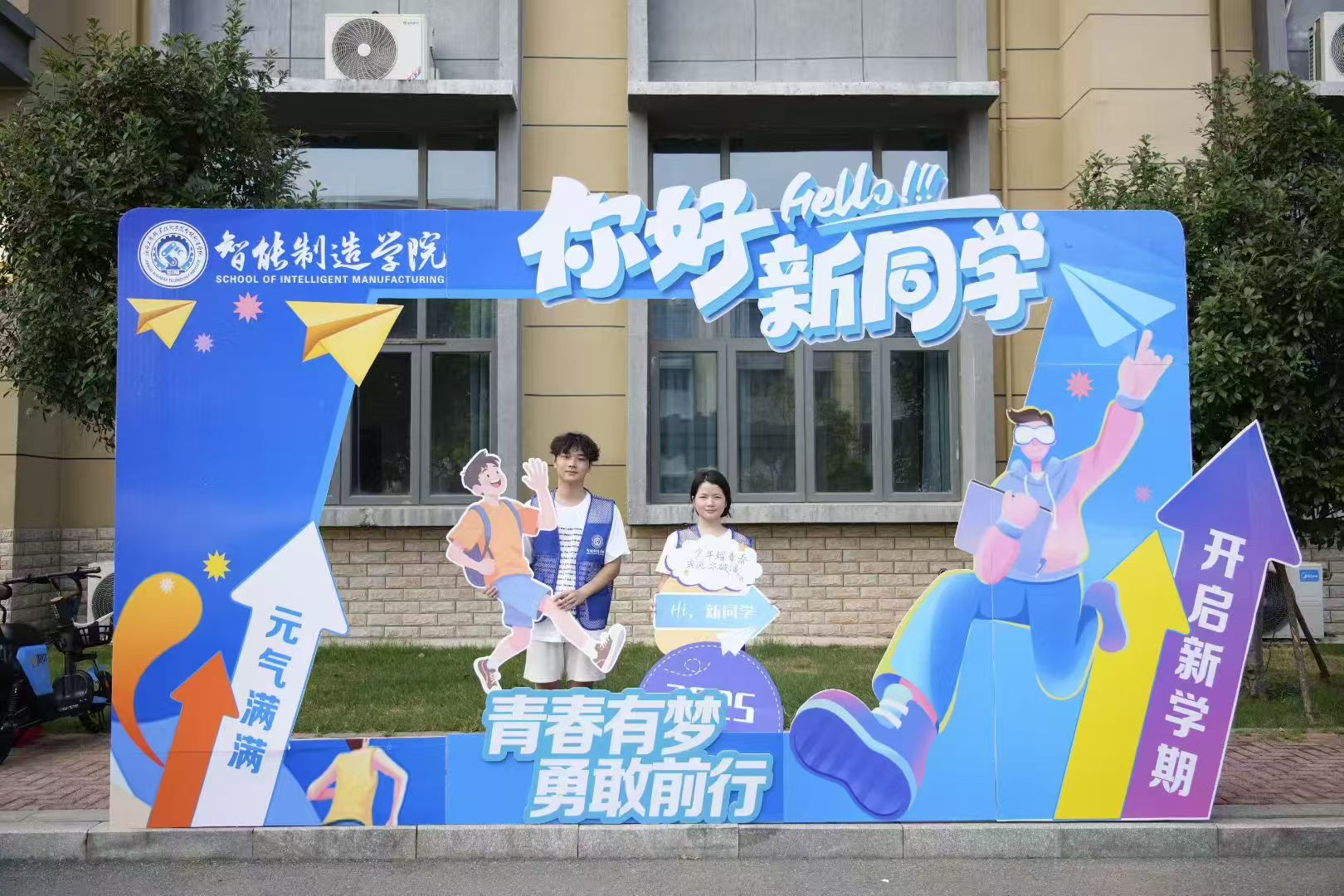 在主會場入口處,一眼就能看到巨型的“歡迎新同學”打卡點!走進迎新會場,學校相關部門及各學院把學科特色巧妙融入了迎新設計中,還設置了專屬合影框,吸引許多新生和家長打卡拍照,用鏡頭記錄與智能制造學院的第一份相遇。