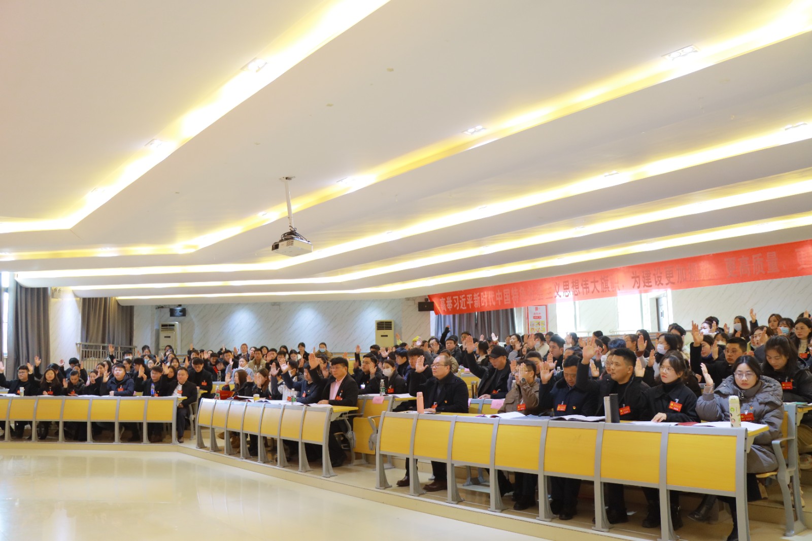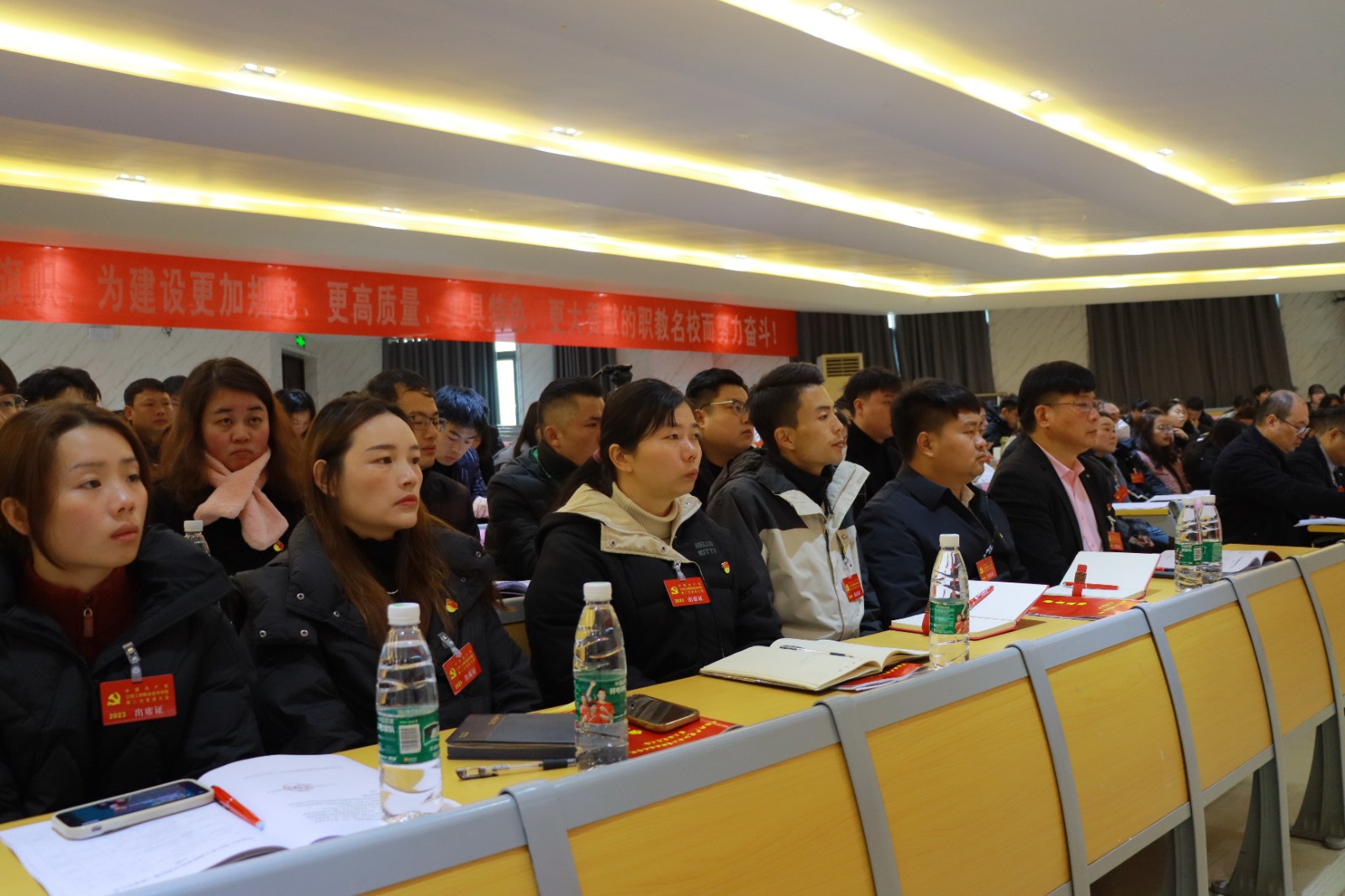 大會(huì)的主題是:高舉習(xí)近平新時(shí)代中國特色社會(huì)主義思想偉大旗幟,強(qiáng)化黨組織政治功能和組織功能,全面落實(shí)教育強(qiáng)國戰(zhàn)略,堅(jiān)持立德樹人根本任務(wù),以高質(zhì)量發(fā)展為生命線,團(tuán)結(jié)和凝聚全校廣大師生,解放思想、開拓進(jìn)取、揚(yáng)長補(bǔ)短、固本興新,為全面建設(shè)“本科標(biāo)準(zhǔn)、職教名校”而努力奮斗。