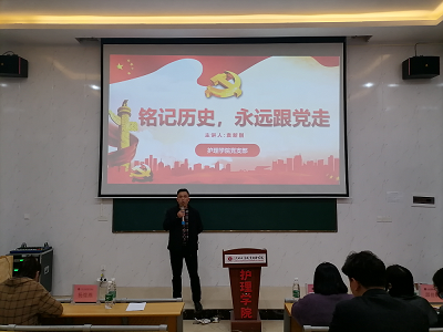 江西工商職業技術學院護理學院以建黨100周年黨史學習為契機,于2021年4月8日晚,在護理學院黨支部書記袁新剛的指導下,開展了一次關于“銘記黨史,永遠跟黨走”的黨史黨課的學習。