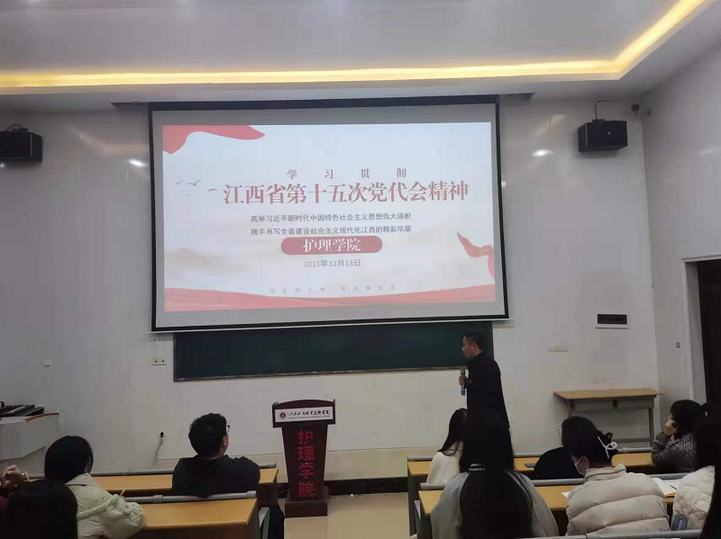 12月13日晚七點半,在護理學院學術報告廳西103開展了第十五次黨代會專題集中學習會,傳達學習省第十五次黨代會,學習貫徹落實工作,動員全校上下切實把思想和行動統一到省黨代會精神上來,把智慧和力量凝聚到“作示范、勇爭先”目標定位和“五個推進”重要要求上來,埋頭苦干、勇毅前行,為攜手書寫全面建設社會主義現代化江西的精彩華章貢獻江工力量。黨支部書記袁新剛主持會議并講話。全體輔導員和學生代表參加學習。