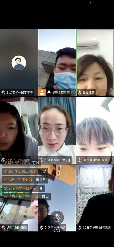 首先,馬江華副書記與大家重溫歷史,講述了五四運動的背景和五四青年節的來歷。接著,馬副書記圍繞“青年學、青年說、青年行”的主題,結合當前的抗疫之戰和當下學生們的思想,作為青年學生該學什么、說什么、做什么,引思大家思考,引導學生向優秀榜樣人物學習,傳播正能量,用積極的思想武裝自己。馬書記結合身邊鮮活事例,與同學們談心談話的方式,從青年學、說、行方面還分享了如何閱讀、怎樣管理自己的健康、時間和心態這四點,給學生們上了一堂生動黨課。視頻線上黨課氣氛熱烈,學生們積極互動,發言積極,這堂課給護院的學子們從思想上、行動上都給予了很好的指引和啟迪作用。