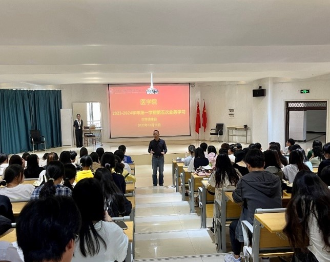 王木生院長致辭,他指出,疼痛在我們日常生活中非常常見,尤其對于我們醫(yī)學生來講,疼痛更是一個非常重要的生命體征,希望通過這次以“疼痛”為主題的業(yè)務學習活動,能夠讓大家更全面地認識疼痛,更深入理解疼痛。